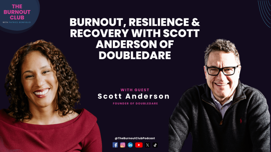 In the latest episode of The Burnout Club Podcast, host Patrice Bonfiglio welcomes business coach and licensed therapist Scott Anderson for an eye-opening conversation on reversing burnout. Anderson, founder of DoubleDare and author of You’re Not Toast, opens up about his own experience with burnout and introduces counterintuitive techniques designed to help high-performing professionals recover—starting with just seconds a day.