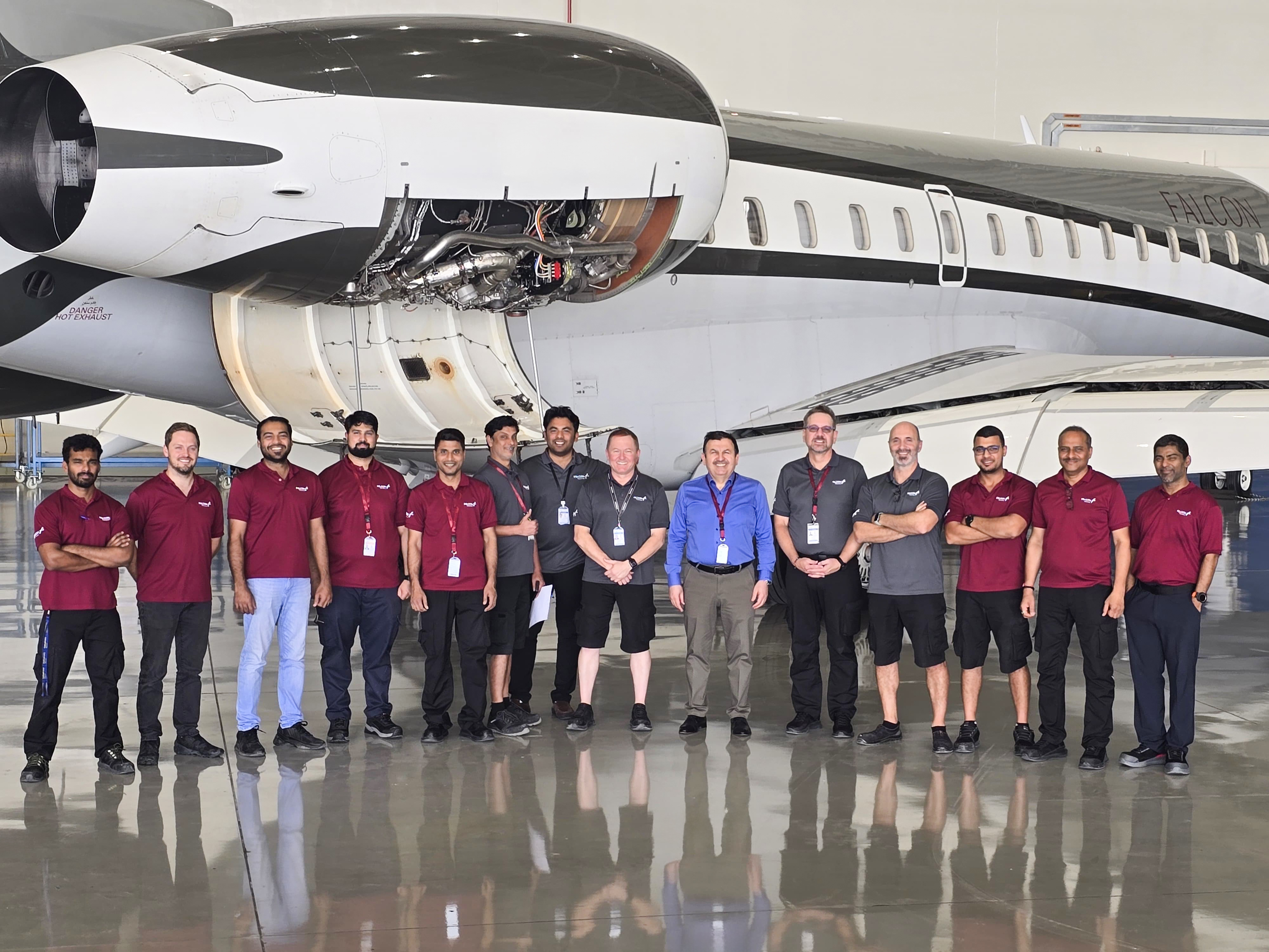 It marks a major milestone for Falcon, which recently received its CAR 145 approval from the UAE General Civil Aviation Authority. The work is being carried out to ensure the aircraft remains in full compliance and continues to reflect Falcon’s high standards of safety and comfort.