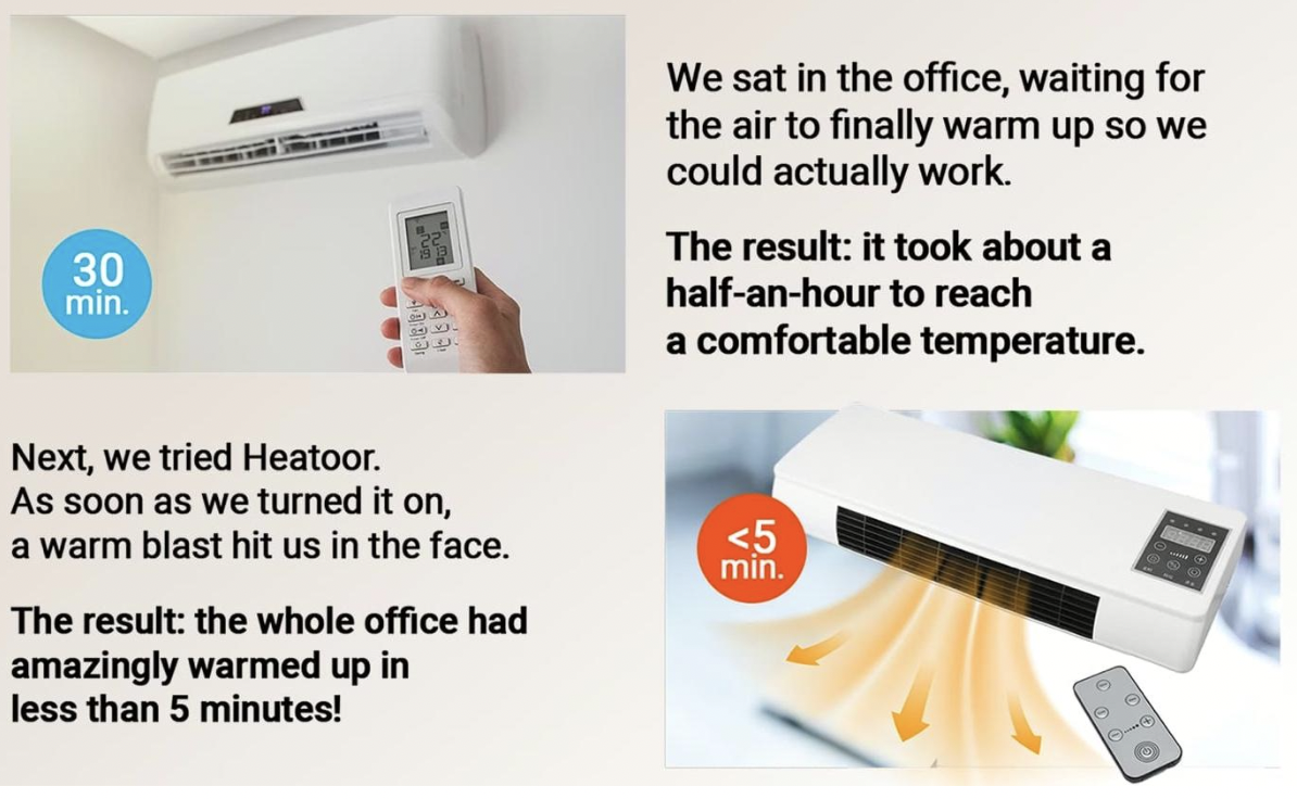 Additionally, the durable, compact design reduces maintenance and operational issues, eliminating hidden costs associated with repairs or replacement parts. Built-in safety features minimize the risk of damage, extending the lifespan of the product. With its combination of energy savings, low maintenance, and a direct sales model, Heatoor delivers an advanced heating solution that is not only effective but also economically accessible for households and offices alike.
