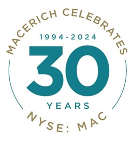 Macerich is a fully integrated, self-managed and self-administered real estate investment trust (REIT). As a leading owner, operator and developer of high-quality retail real estate in densely populated and attractive U.S. markets, Macerich’s portfolio is concentrated in California, the Pacific Northwest, Phoenix/Scottsdale, and the Metro New York to Washington, D.C. corridor. Developing and managing properties that serve as community cornerstones, Macerich currently owns 44 million square feet of real estate consisting primarily of interests in 41 retail centers. Macerich is firmly dedicated to advancing environmental goals, social good and sound corporate governance. A recognized leader in sustainability, Macerich has achieved a #1 Global Real Estate Sustainability Benchmark (GRESB) ranking for the North American retail sector for nine consecutive years (2015-2023). For more information, please visit www.Macerich.com.