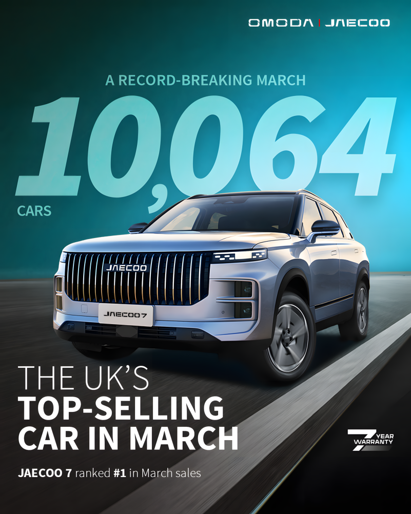 - JAECOO also set another record, confirming that its JAECOO 7 was the best-selling new car in March, making it the top-selling UK passenger car year-to-date in 2026 as well*