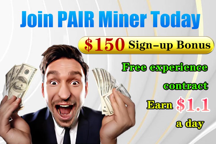 PAIRMiner’s platform enables immediate participation in mining through on-demand computing power rentals. New users receive $150 in free mining credits upon registration, allowing them to begin earning daily returns through contract-based payouts.