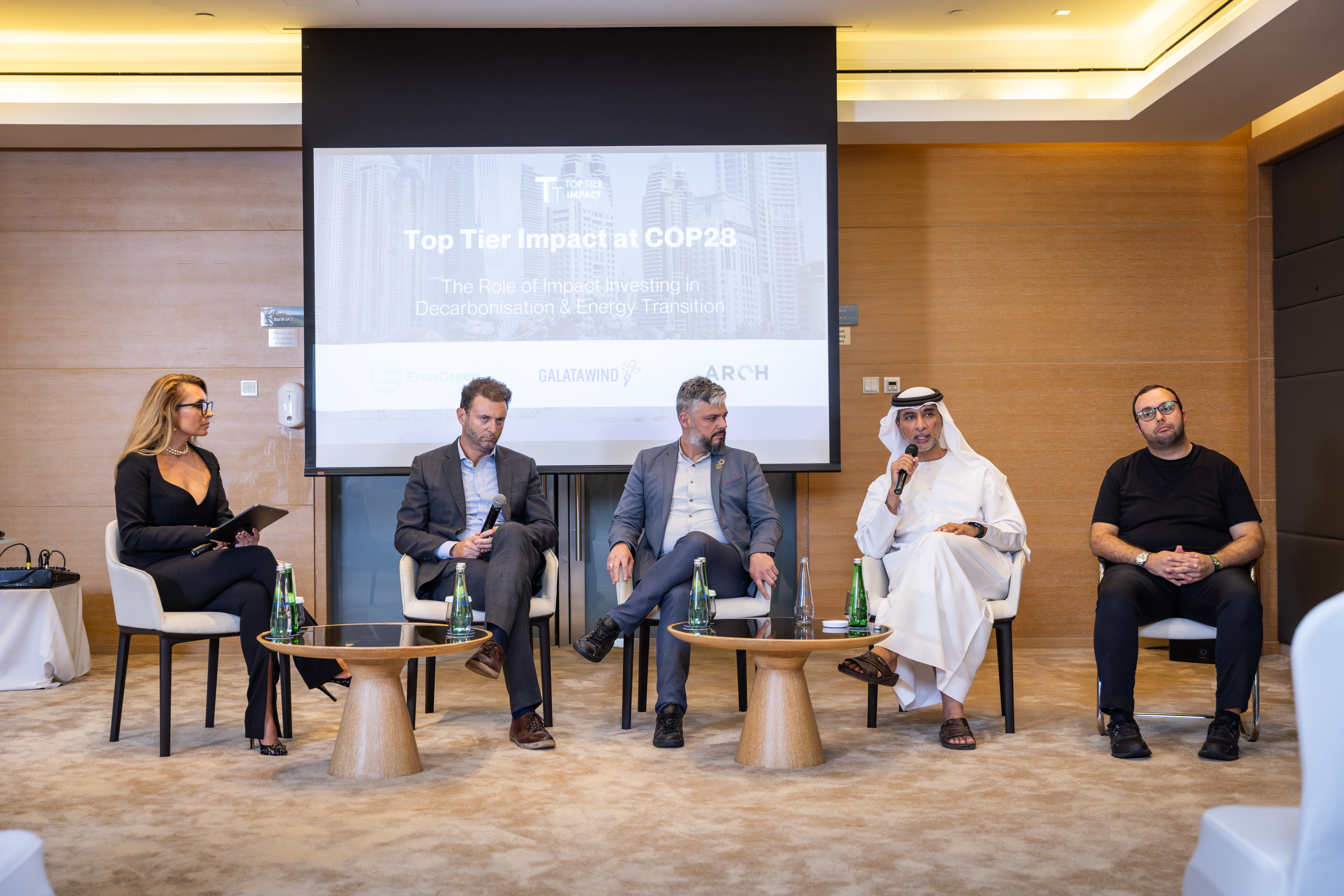 - “The Role of Impact Investing in Decarbonisation” – Moderated by İlkay Demirdag, this panel featured Kadir Gungor, Chairman of Sustainable Impact Capital & Holding, Mattia Pipino, Group CEO of Green Coast Enterprises, Maher Al Kaabi, Advisor to Group Chairman & Independent Board Member at Alserkal Group, and Pierre Abadie, Group Climate Director at Tikehau Capital. Each speaker shared their organizational journey toward sustainable development and climate resilience.