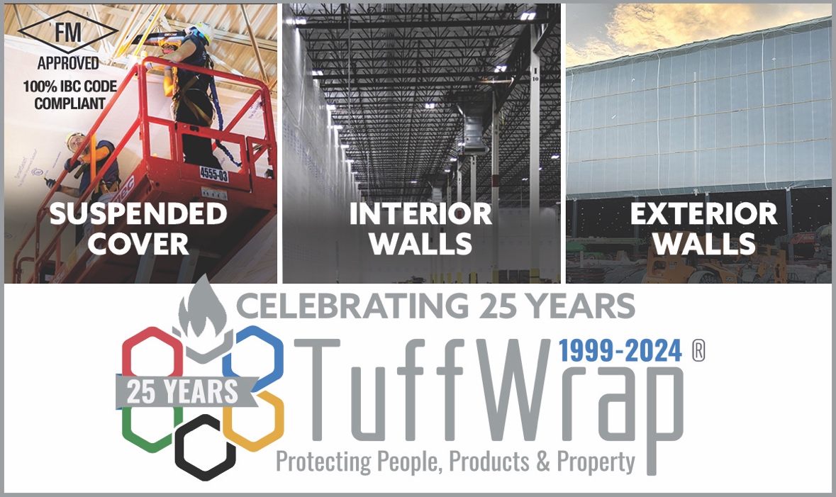 HARLEYSVILLE, Pa., Jan. 04, 2024 (GLOBE NEWSWIRE) — TuffWrap Installations, Inc., tuffwrap.com, the North American leader in innovative temporary dust, debris, and weather construction containment solutions, is celebrating its silver (25th) anniversary throughout 2024. The company’s first interior protection project was completed in 1999 when it installed a suspended cover temporary ceiling for David/Randall Associates during the reroofing of the 40,000 sq. ft. picture frame manufacturer to keep the facility fully operational. This began the discovery of the vast need to provide protection in the workplace during re-roofing and renovation work. Today, companies look to TuffWrap’s interior and exterior protection systems to separate the work environment from the construction zone.